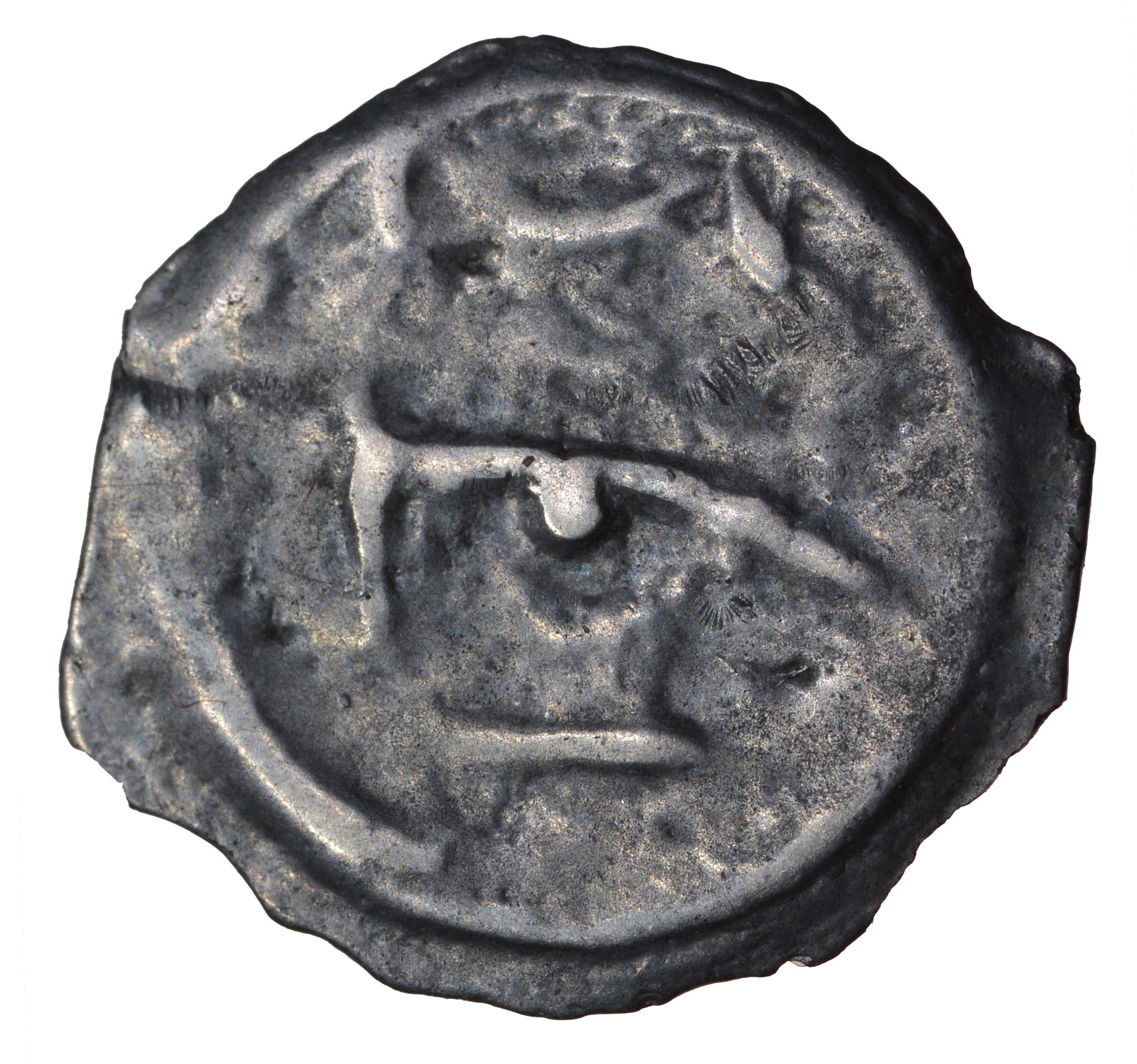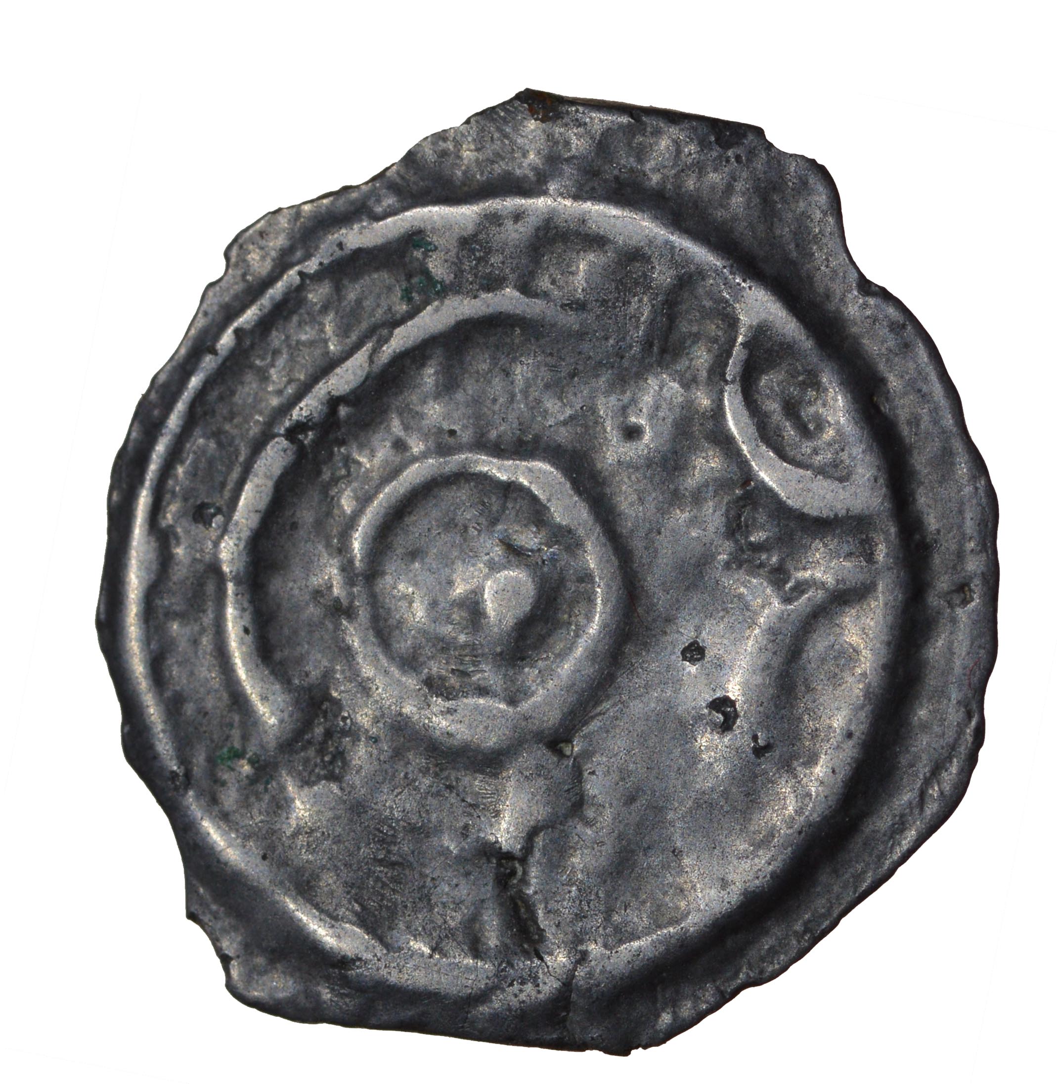 Curved Bull. Holman E1/4-4a. c.85-70 BC. Cast potin unit. 18-20mm. 1.56g. Head facing right, open face, central eye ring with pellet./ Curved bull facing right, pellet below, two crescents above, exergual line. ABC–, VA 125-1, BMC 707, S–. Nr VF, clear face and bull. Ex Anthony Levine collection, bt. Chris Rudd (2023). EXTREMELY RARE. Was £85. Now only £75