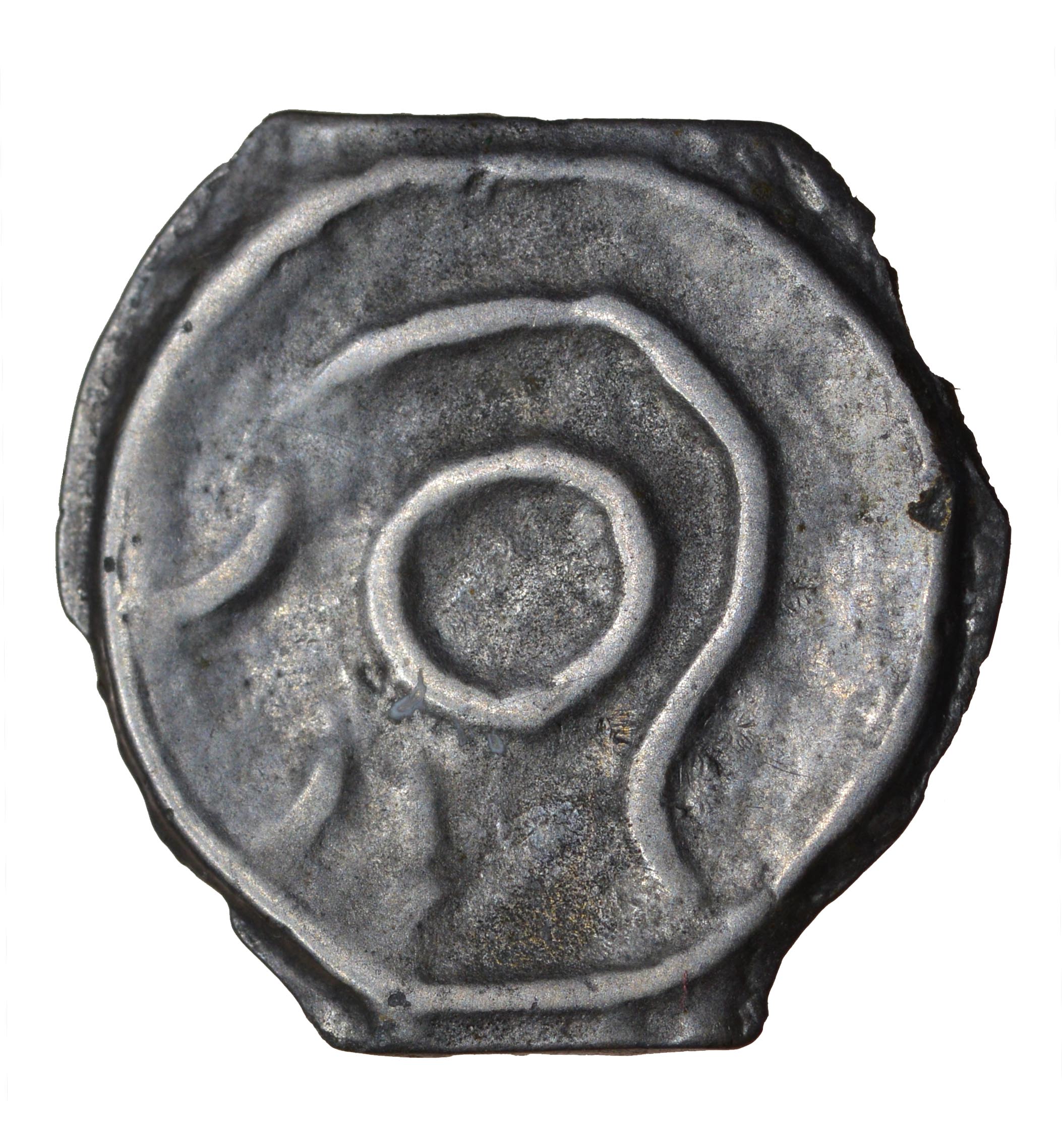 Striations Left. Holman C3/1-2b. c.105-90 BC. Cast potin unit. 17mm. 1.82g. Linear head facing left, central eye pellet, open face and nose./ Angular bull facing left, two crescents above, exergual line, faint horizontal striations. ABC 153, VA 117-1, BMC 674, S–. VF, clear head. Ex Anthony Levine collection, bt. Chris Rudd (2022). EXTREMELY RARE. Was £85. Now only £75
