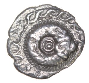 By c.AD10 Cunobelinus, ‘hound of Belenus’, son of Tasciovanos and Cymbeline of Shakespeare, had united the Catuvellauni and Trinovantes. By AD 43 his family had control of the Cantiaci, Atrebates and Regini, and influence with the Dobunni and Iceni and possibly the Corieltavi also. Suetonius (Caligula 44) called Cunobelinus ‘Britannorum rex’.