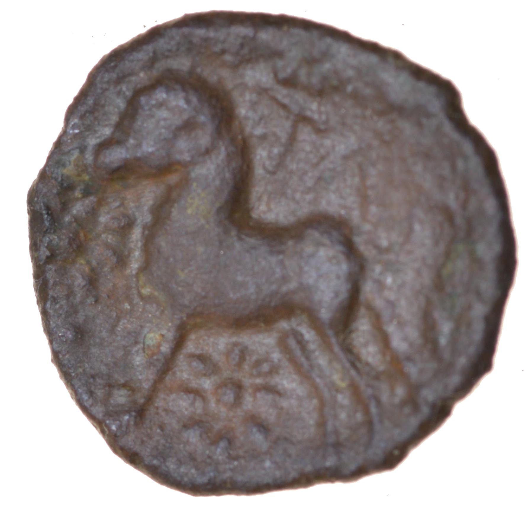 The Catuvellauni, ‘men good in battle’, were one of the two main north-Thames tribes, concentrated in Hertfordshire and including parts of seven surrounding counties. They were probably the most powerful tribe in Britain when their king,Cassivellaunos, commanded the British coalition against Caesar in 54BC. Mint-sites at their capital, Verlamion (St Albans), and maybe Braughing.