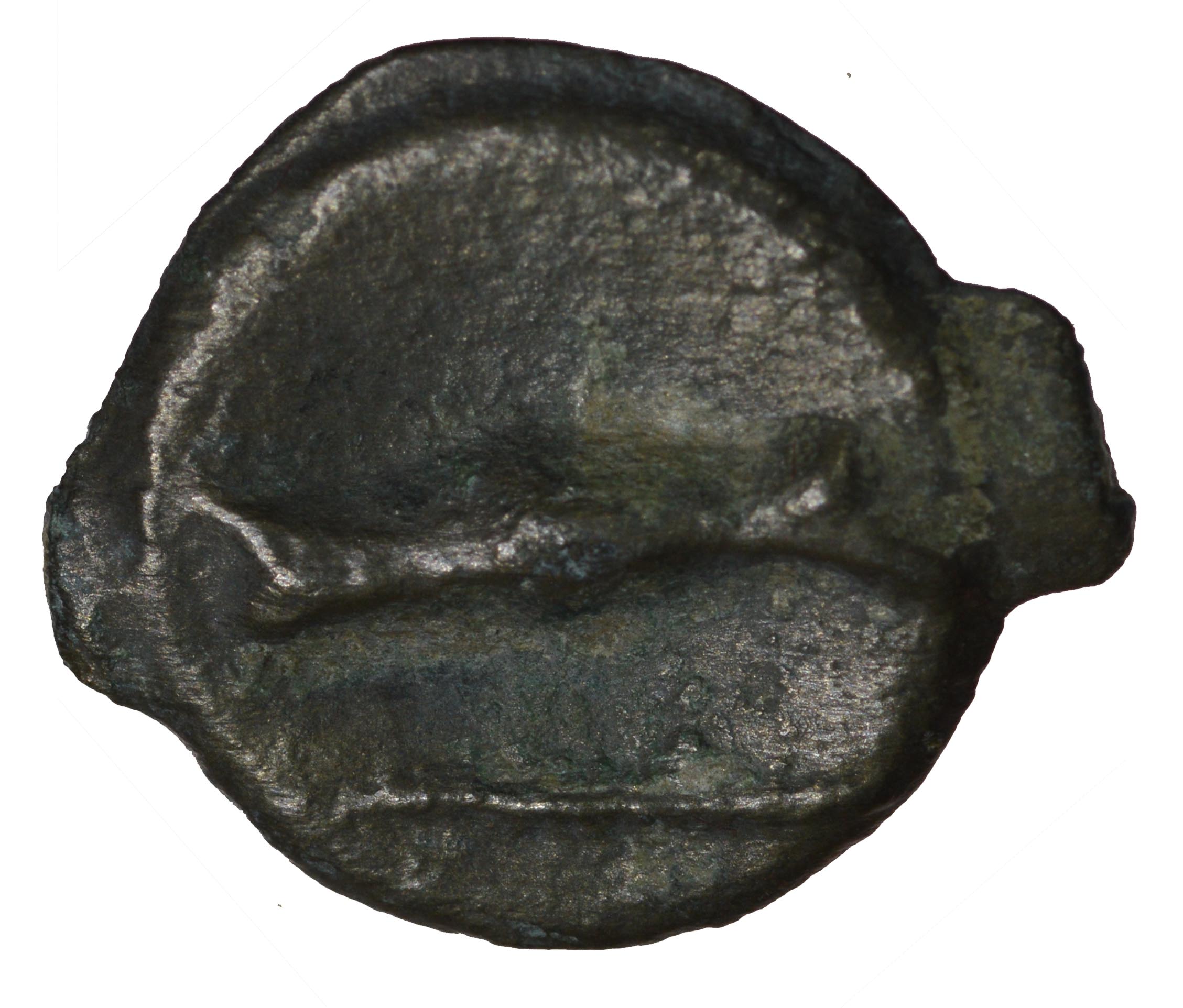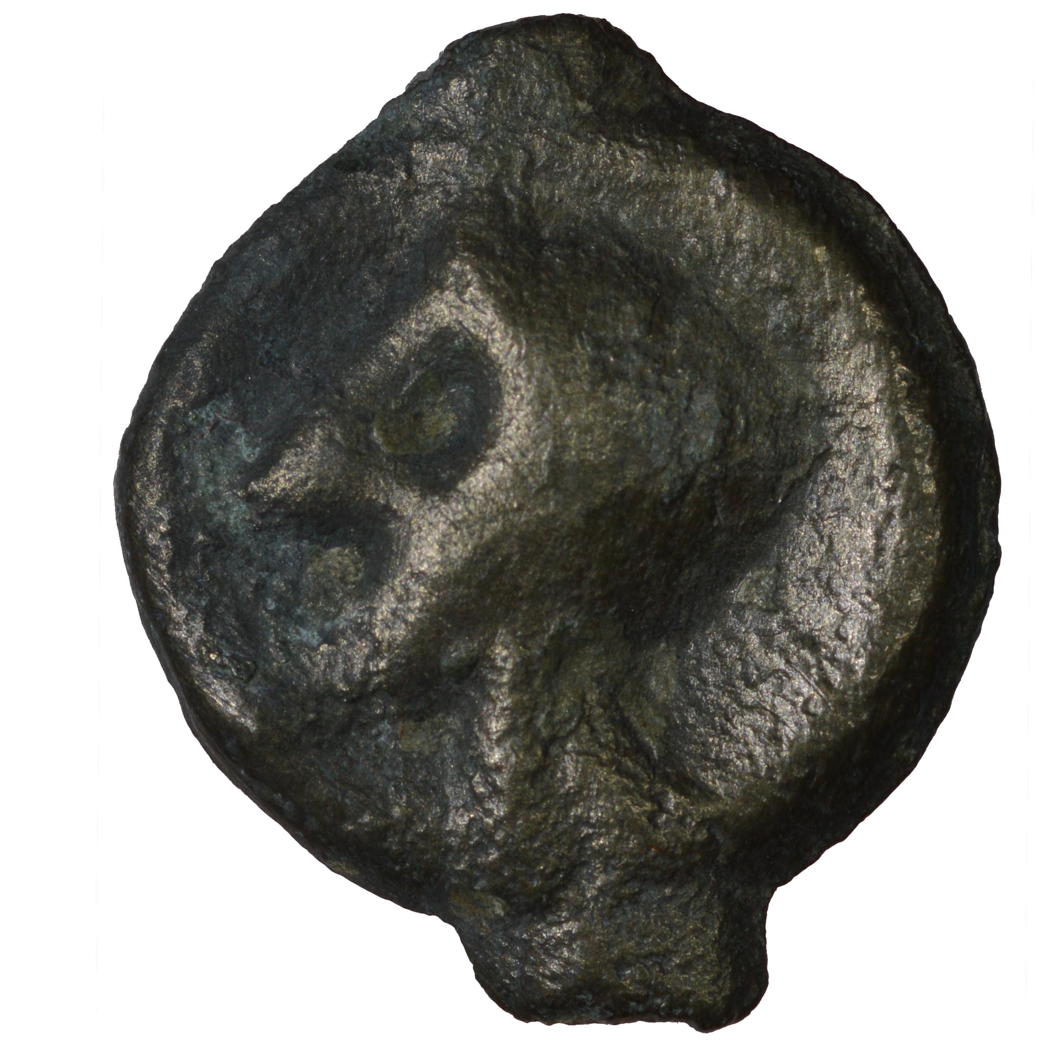 Devil’s Head (tête diabolique). Turones. c.80-50 BC. Potin. 16-19mm. 3.17g. Head facing left, sunken eye socket./ Stylised bull. ABC 112 var., LT—, BMC III 298. Gd VF, earthy-green patina, lovely head. Ex Anthony Levine collection, bt. Chris Rudd (2018). Found Faversham, Kent. EXTREMELY RARE as UK find. Was £85. Now only £75