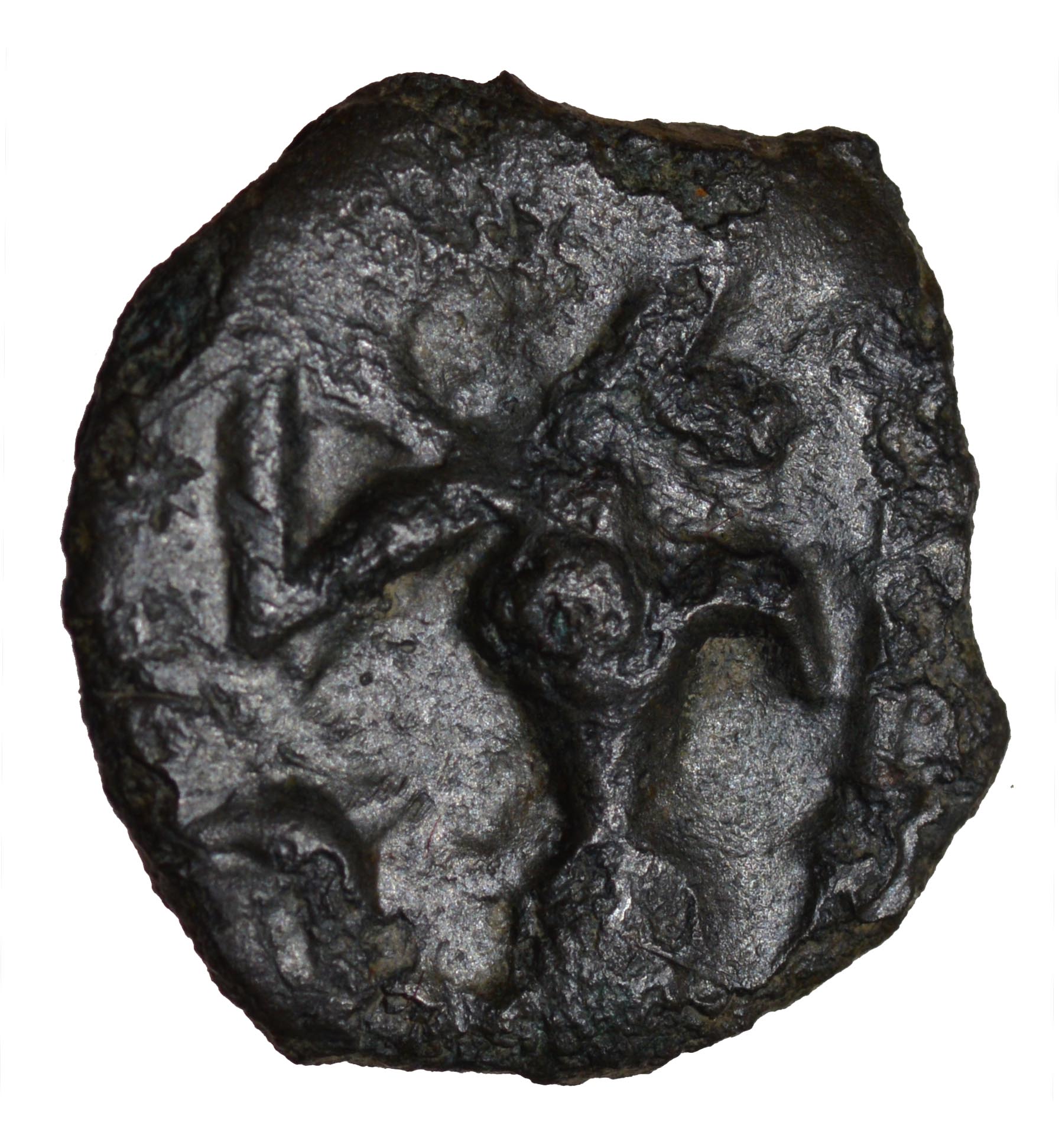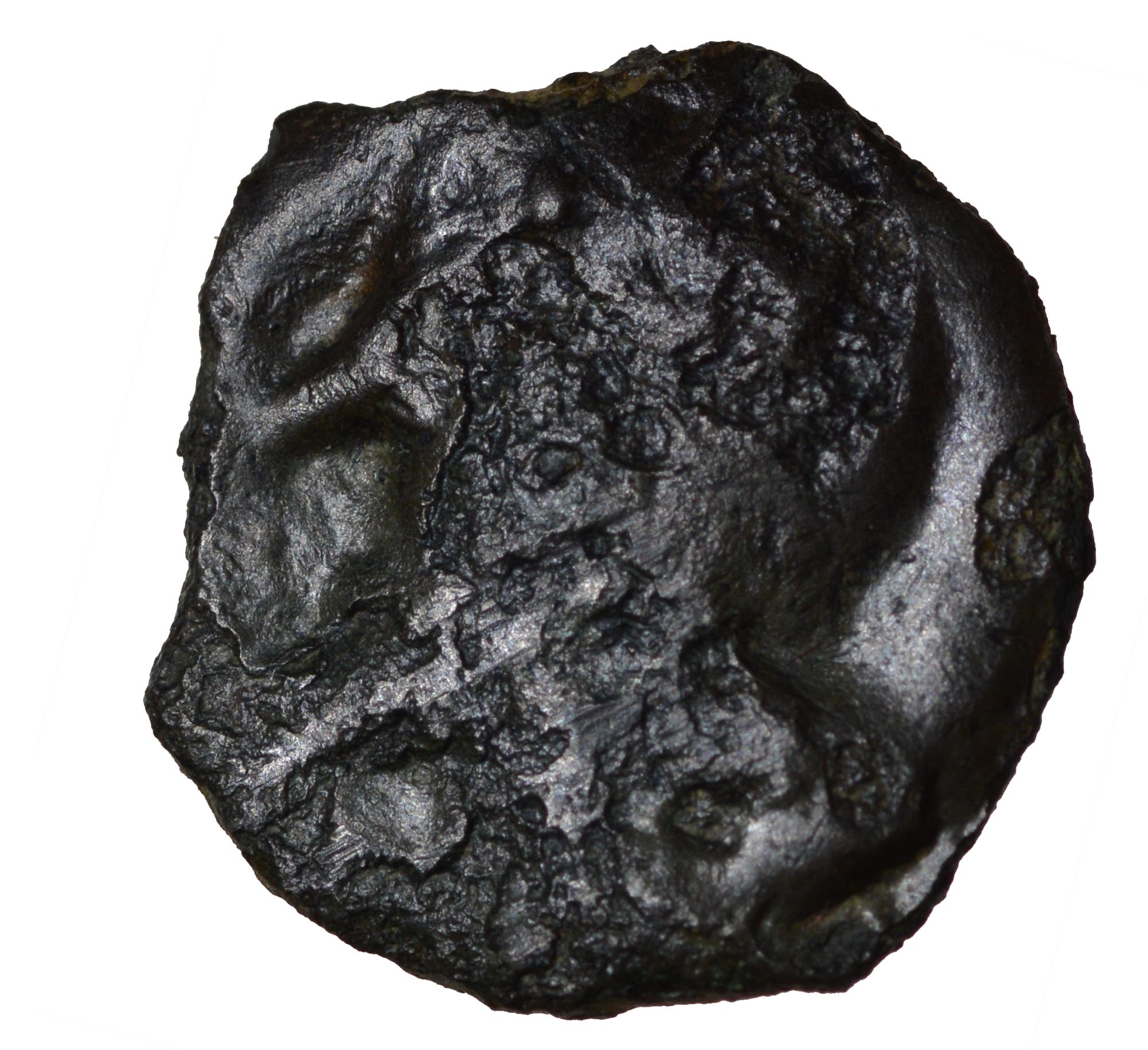 Running Warrior. Leuci. c.60-40 BC. Potin. 16mm. 2.68g. Helmeted head facing left./ Warrior running left. arms raised. LT—, BMC S 561, DT 230. Fine, clear man. Ex Anthony Levine collection, bt. Chris Rudd (2020), ex Adrian Clarke collection. Found Deal, Kent, 1996. EXCESSIVELY RARE in the UK. Was £35. Now only £25